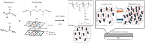 Thermo-responsive gas barrier membranes were fabricated using acrylamide–acrylonitrile copolymers and layered double hydroxides. The membranes exhibited temperature-dependent behavior, showing enhanced water vapor barrier properties below 40 °C and reduced performance at 50 °C. Such characteristics are attractive for packaging applications in logistics, where fluctuating temperatures can affect perishable products. By providing stronger barrier properties at lower temperatures and allowing increased permeability at higher temperatures, these membranes may help mitigate condensation-related damage during transportation. FT-IR analysis revealed a slight low-wavenumber shift in the amide absorption peaks upon LDH incorporation, suggesting molecular-level interactions between the copolymer matrix and the inorganic layers. These findings indicate that combining UCST-type copolymers with LDH fillers offers a promising approach for developing membranes with tunable gas barrier performance for future smart packaging systems.