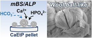 Hydroxyapatite (HAp) with similarity in natural bone mineral is called bone-like apatite (BAp), and the formation of BAp on material surfaces in the body environment substantially contributes to materials to make bonding to living bone. It is proposed that designed materials, namely salts of calcium and phosphate esters (SCPEs), possess the property of enhancing BAp formation in simulated body fluid (SBF) modified with alkaline phosphatase (ALP). Such materials are called bioresponsive ceramics. The crystalline phase of BAp is generally identified as HAp by X-ray diffraction analysis. Since several-types of SBF have been reported, in this study, HAp formation on calcium ethyl phosphate (CaEtP) pellets, which is one of SCPEs, was examined in the solutions mimicking SBF, that is, modified biomimetic solution (mBS) and evolved biomimetic solution (eBS). The critical difference between these solutions and conventional SBF is carbonic acid concentrations in the solutions. It was found that capability of HAp formation of CaEtP pellets in mBS and eBS was lower than that in mBS and eBS containing ALP. The morphology of the HAp formed on the pellets was distinctive in mBS and eBS containing ALP: i.e., formation of wool-ball-like shaped particles in mBS containing ALP, while formation of fine spherical particles in eBS containing ALP. These differences, namely nucleation, crystal growth and morphology, are likely governed by concentrations of carbonate ion species in the reaction solution. It can be concluded that controlling the concentration of carbonate ions in the biomimetic solutions enables controlling the formation behavior of HAp as well as its morphology. These findings provide basic knowledge about nucleation and crystal growth of HAp in biomimetic solutions as well as basic understanding of the reactivity on bioresponsive ceramics.